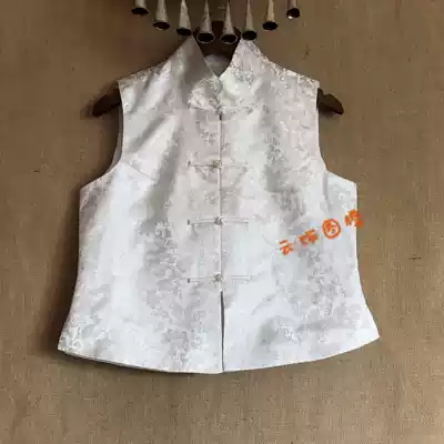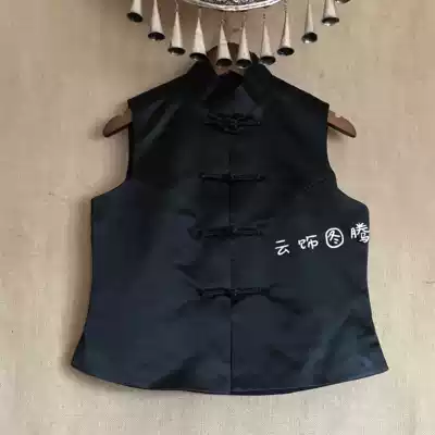 Cloud decoration totem original design women's top horse clip plain silk satin wild stand-up collar small waistcoat women's vest