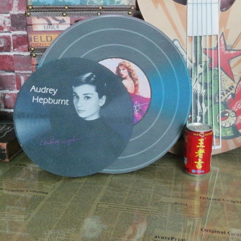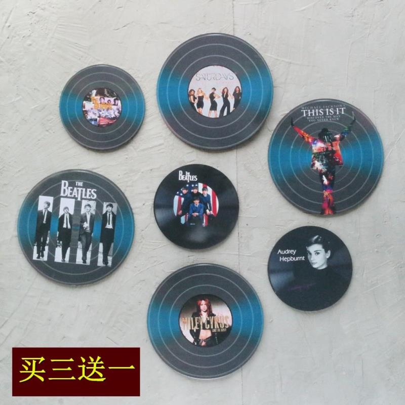 Vintage vinyl record poster wall sticker hanging bar KTV cafe wall decoration personalized wooden pendant