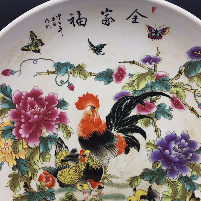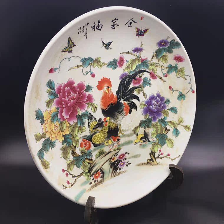 Dry Lung Powder Color Porcelain Pan Whole Family Fu Antique Pendulum Imitation Ancient Porcelain Collection Hanging Trays Rich And Expensive Photos Home Craftsmanship Gifts Swing Accessories