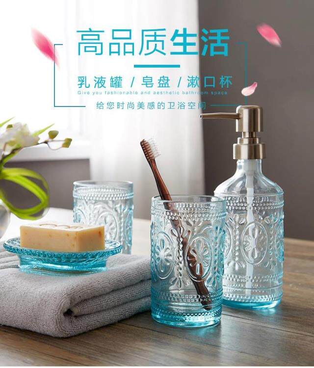 Tayohya Diversity House Remy Oval Glass four pieces of gift box with blue bathroom lotion cans sapon cup