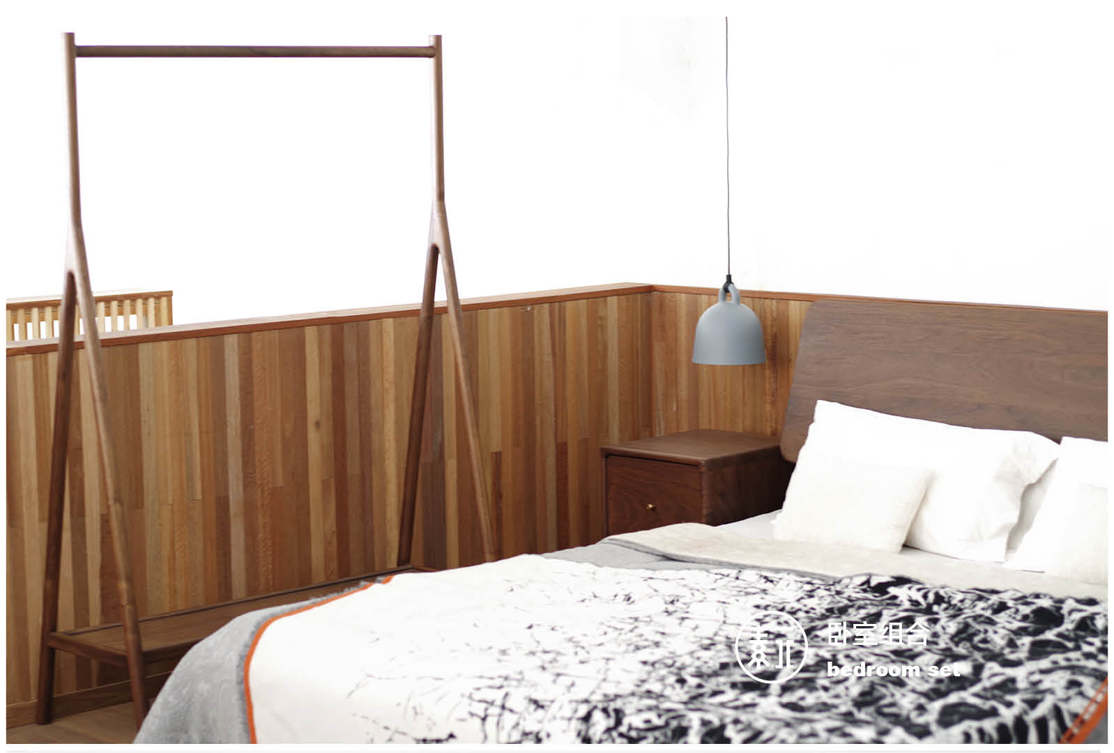 Vegetarian furniture | bedroom furniture combination | bed-bed head cabinet hanging hanger) New Chinese solid wood) modern minimalist