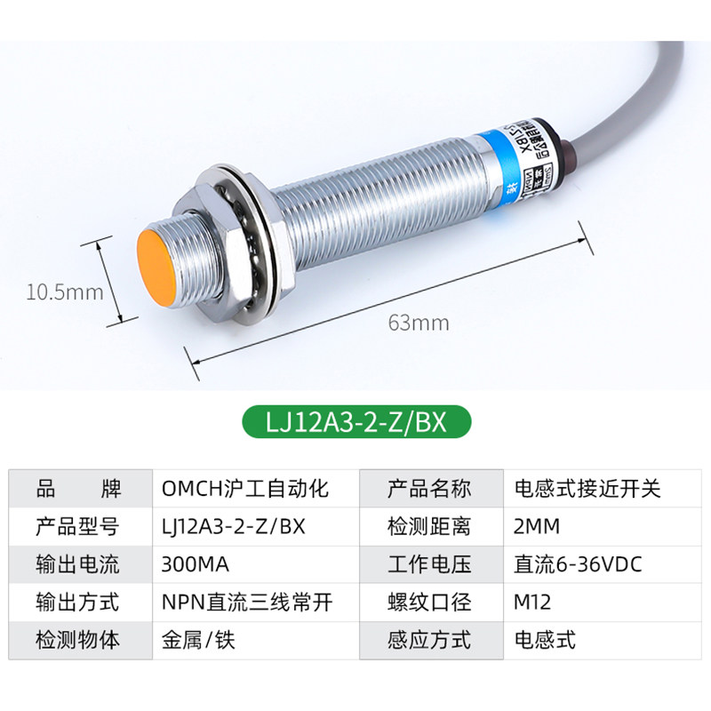 Hugong proximity switch LJ12A3-4-Z BX DC NPN three-wire normally open 24V 36V metal sensor m12