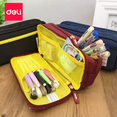 New Deli large capacity multi-function pen bag Three-layer pen bag stationery box Primary school pencil bag storage bag
