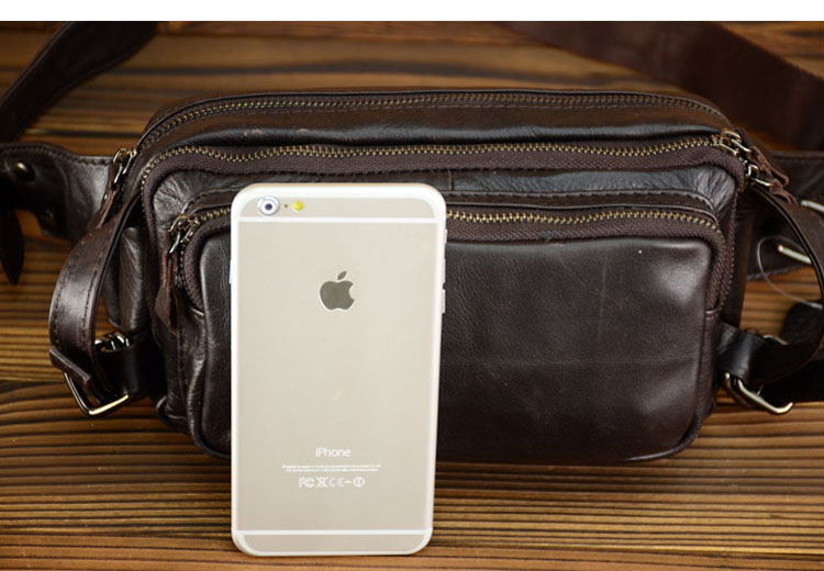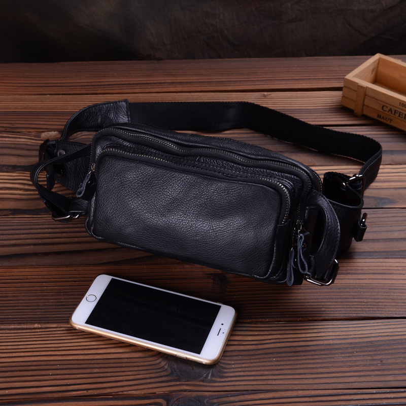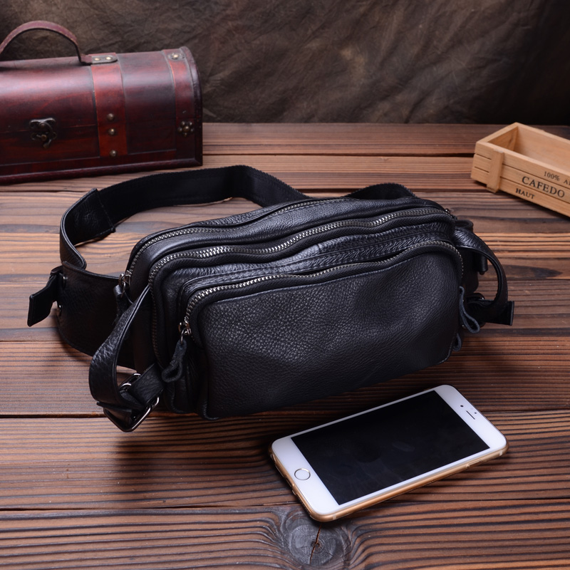 Men's leather large capacity belt bag front layer cowhide multifunctional breast bag Korean version tide one-shoulder cross-body casual small backpack