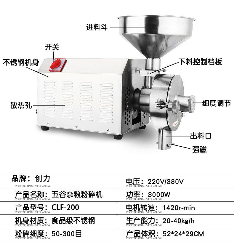Chuangli 3KW whole grain mill Commercial Chinese herbal medicine mill Stainless steel milling machine Ultra-fine grinding machine