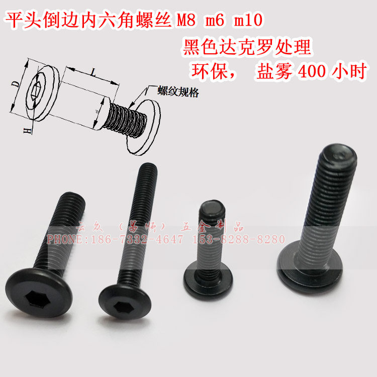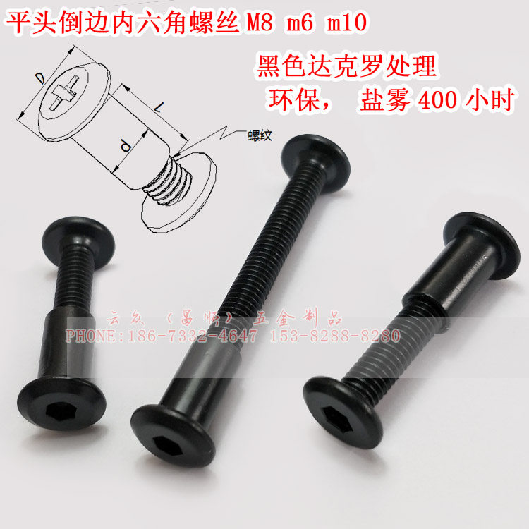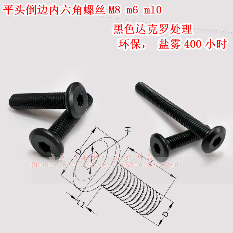 Inverted Side Flat Head Screw M6 Black Darcrocross Flat Head Screw High Salt Mist Corrosion Resistant Inner Hexagon Screw