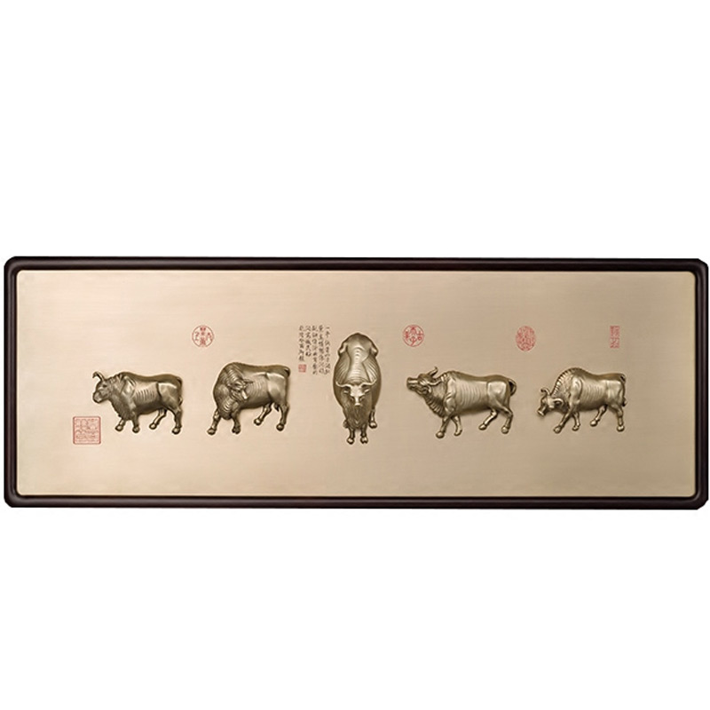 Copper Master's total copper wall-mounted < auspicious Five Niu Chart > Home Process Gift decoration Dining Room Pendant Wall Hanging