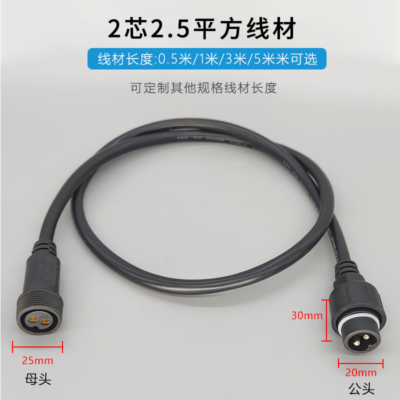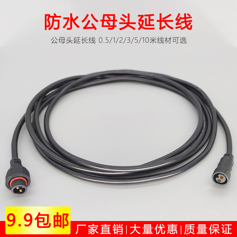 Power extension cord waterproof plug male butt 2-core LED light socket quick to pick up outdoor rain-proof connection line customisation