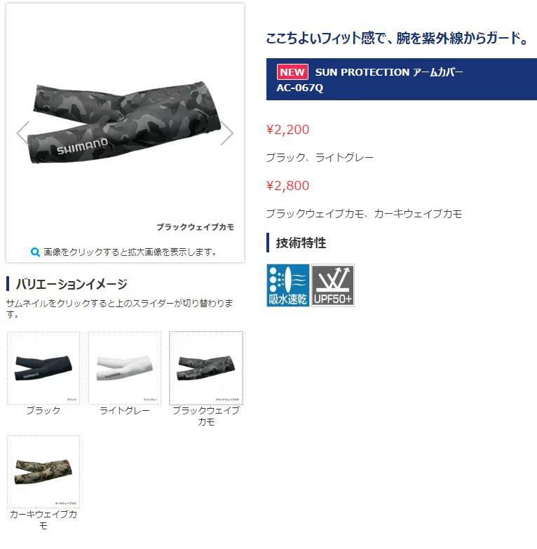 SHIMANO AC-067Q Sports fishing Sunscreen sleeve Water absorption quick-drying uniform code