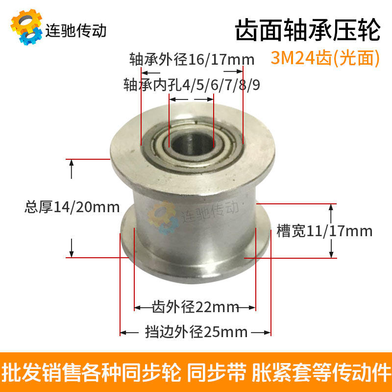 Bearing synchronous wheel 3M24 tooth inner hole 4 5 6 7 8 9 Tooth width 11 17 Tensioner idler