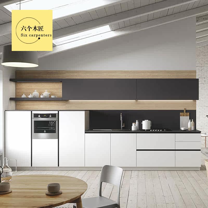 Modern overall cabinet customization Open kitchen cabinet customization Wood grain shape assembly design Whole house customization