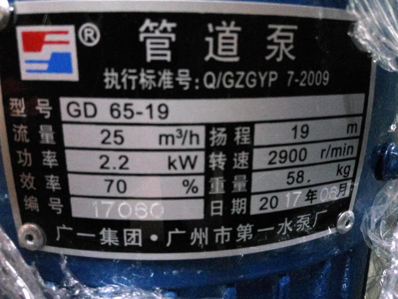 Guangyi GD65-19 Pipeline Pump Guangzhou No.1 Water Pump Factory GD65-30 Pipeline Pump GD Vertical Pipeline Pump