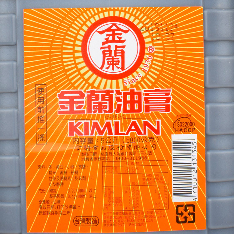 Taiwan Barrel Original Taiwan Imported Gold Lan Soy Sauce Cream Gold Lan Oil Paste 5l Seasoned Halogen Meat Rice Three Cups Chicken-Taobao