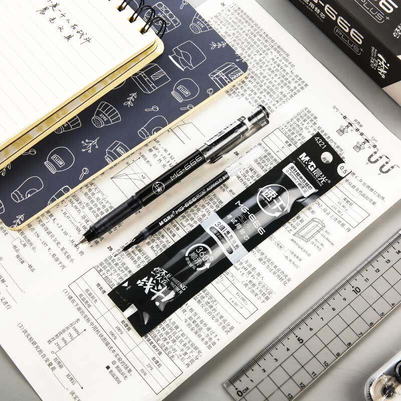Morning light mg666 large capacity neutral pen core 0 5 black students use the test pen pen carbon pen large capacity speed dry business signature pen core 4196 female teacher red pen core