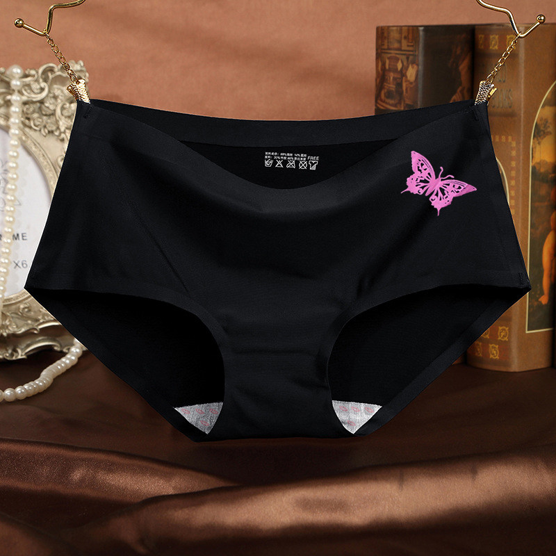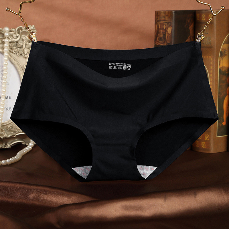 2 Pairs of Seamless Panties Ladies Ice Silk One Piece Sexy Mid Waist Black Breathable Antibacterial Solid Color Cotton Crotch Briefs