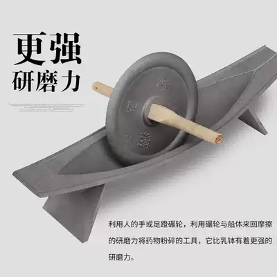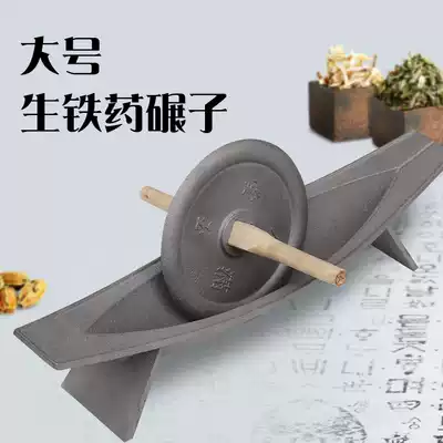 Large pig iron medicine boat solid powder grinding groove cast iron Chinese medicine roller twist thick wood stick crusher