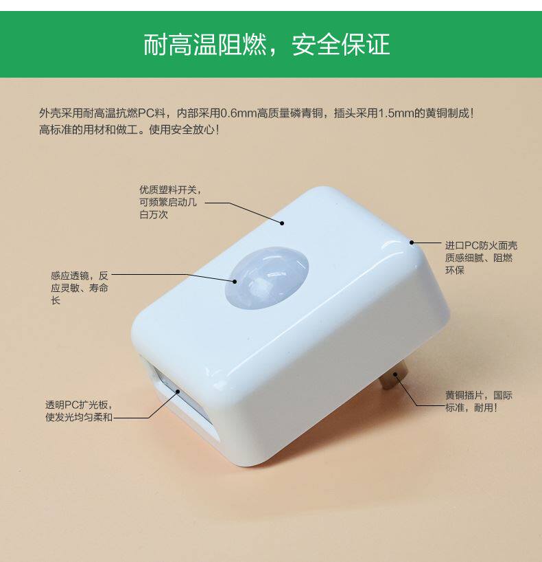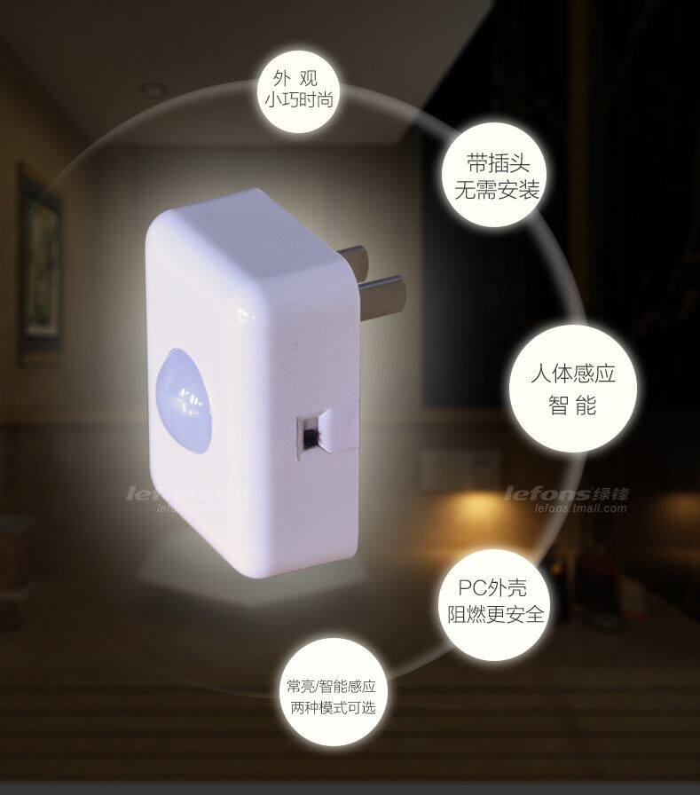 Green frontal lighting LED small night light plug-in electric energy saving 1W human body intelligent induction night lactation lamp bedroom walkway light