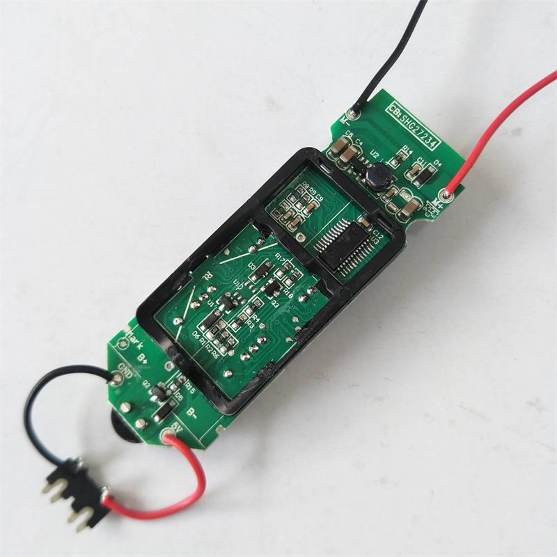 A separate circuit board 800 mA battery pack with a pair of circuit board 800 mA battery welded motor