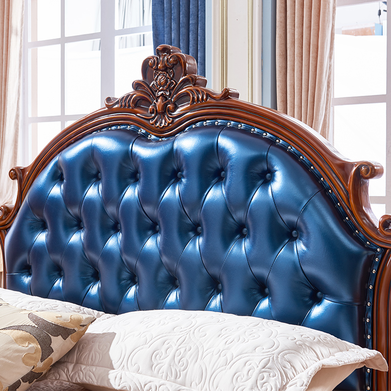 American-style solid wood bed leather bed 1 5 meters high box storage bed master bedroom furniture bed 1 8 meters wedding bed