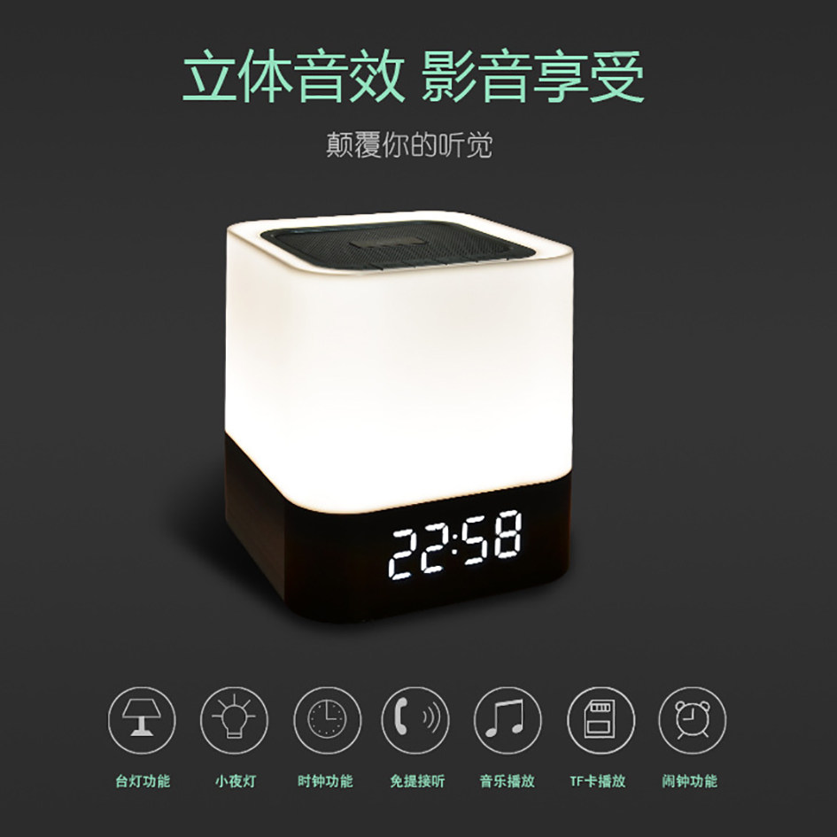 Bedroom bedside bluetooth speaker touch sensor colorful light card U disk playback smart light bass charging audio