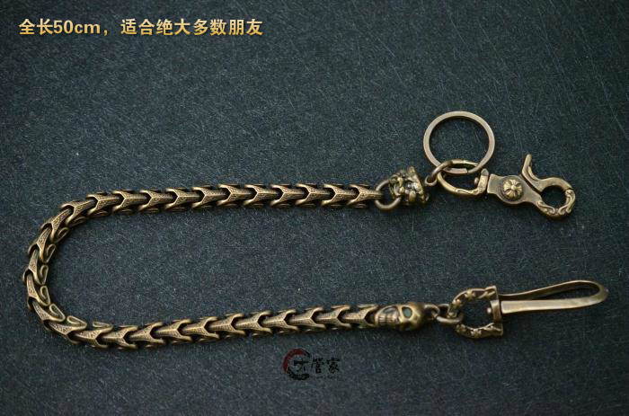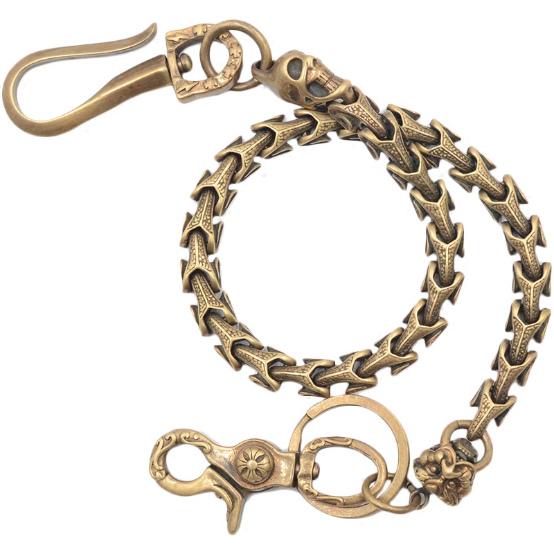 Anti-Loss Key Buckle Chain Handmade Retro Pure Brass Wallet Pants Chain Lion Skull Snake Bone Chain Creative Connection Hook