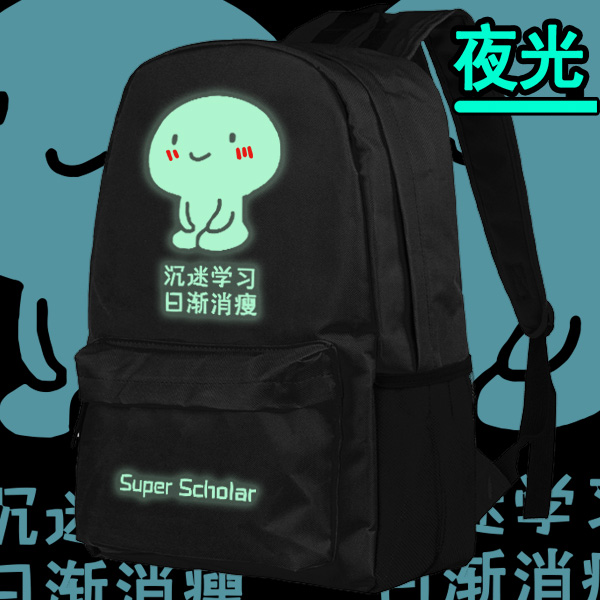 Obsessed Learning Personality Secondary Metafacial Expression Junior High School Student School Bag Double Shoulder Bag for Men and Women Night Light Campus Korean Edition