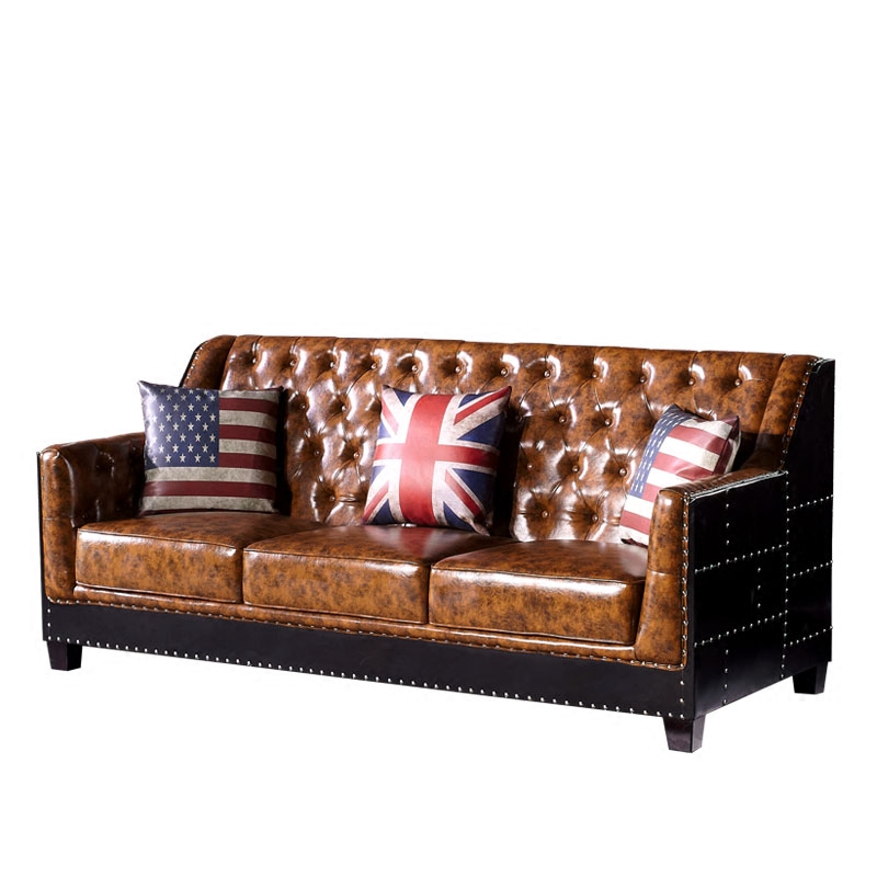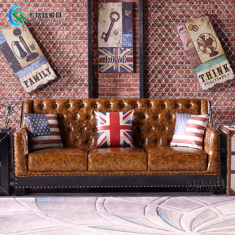 British style creative black oil wax leather industrial style sofa American retro leather cigar bar wrought iron bar shaped