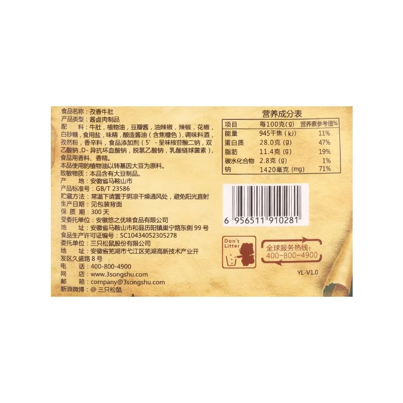 Three squirrels, small bitches, cuisines 120g Spicy Notes of Sesame Sauce with Cooked Beef Belly of the Cooked Pork Belly