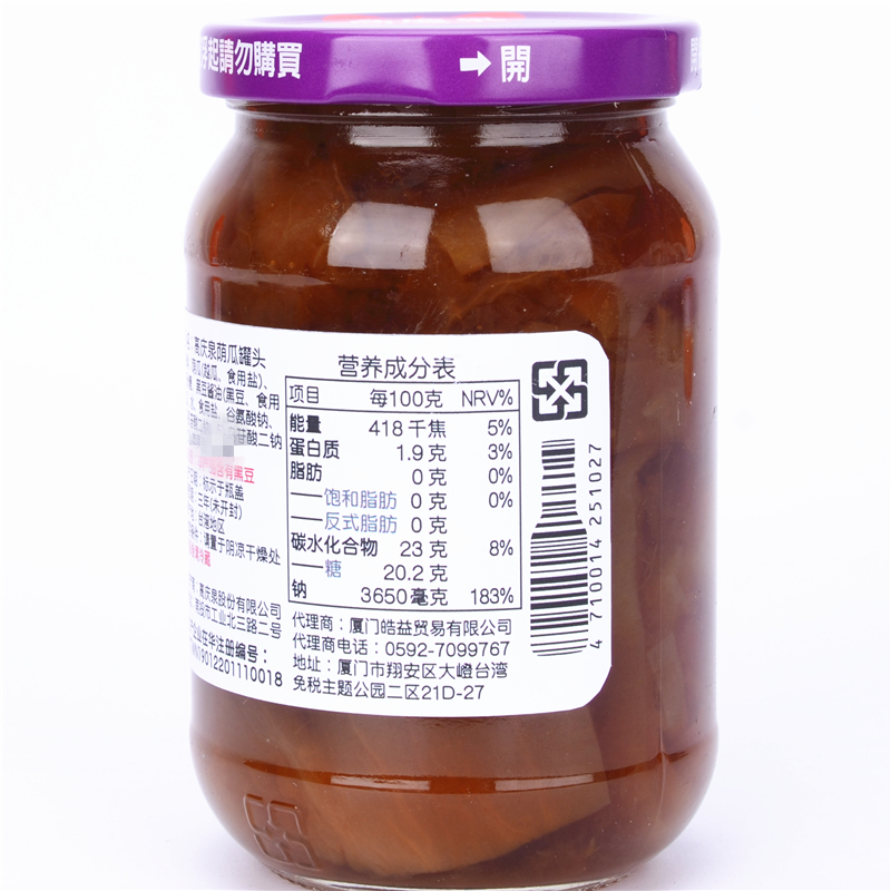 Taiwan imported pickles Gao Qingquan pot bottom shade melon 420g vegan fresh and tender melon fast food porridge with rice breakfast