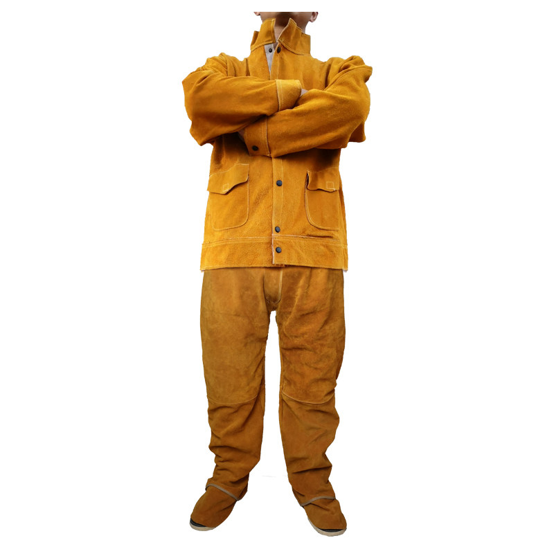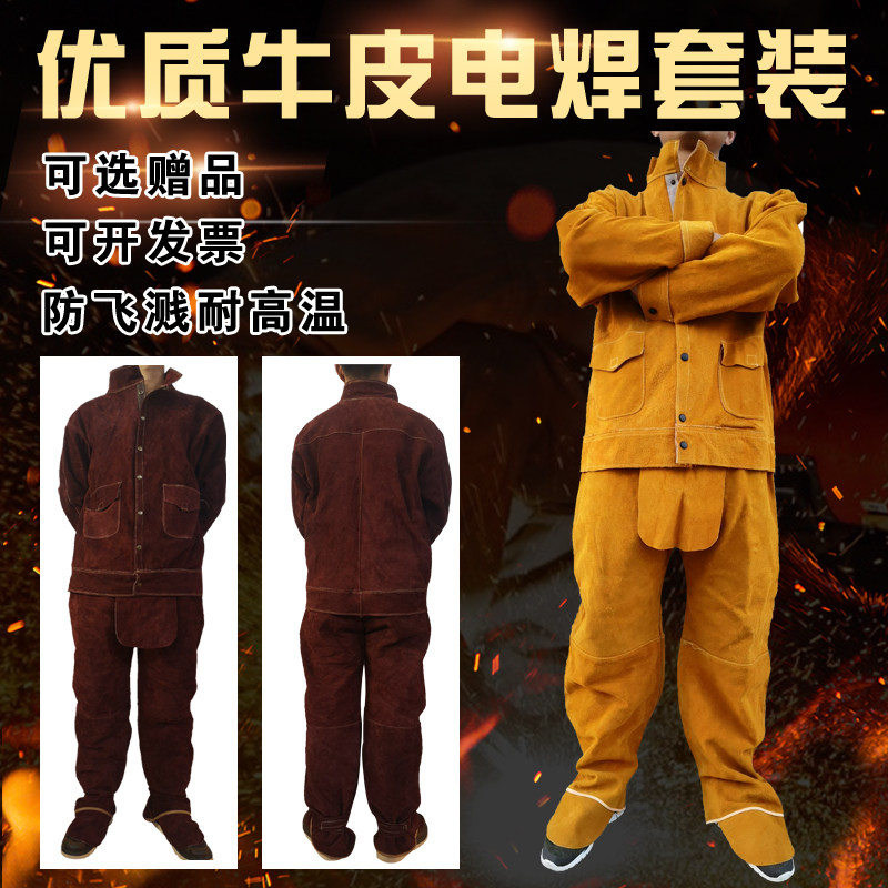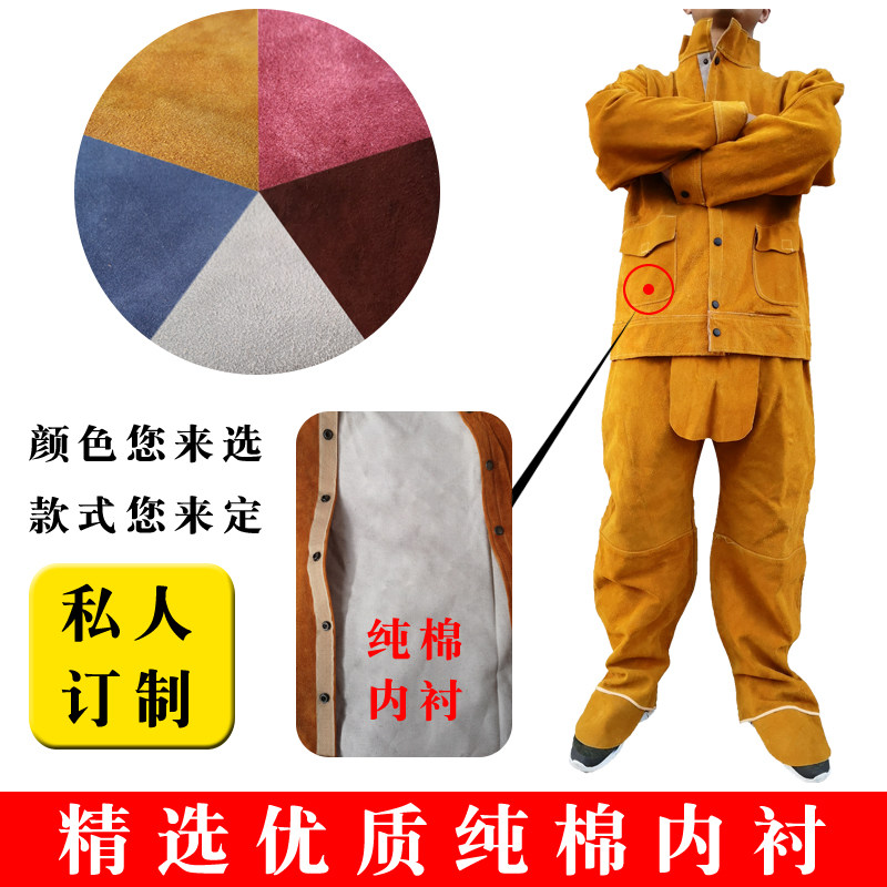 Cow leather electric welding work clothes abrasion-proof and anti-flame-proof and radiation-resistant welded leather argon arc welding protective clothing suit