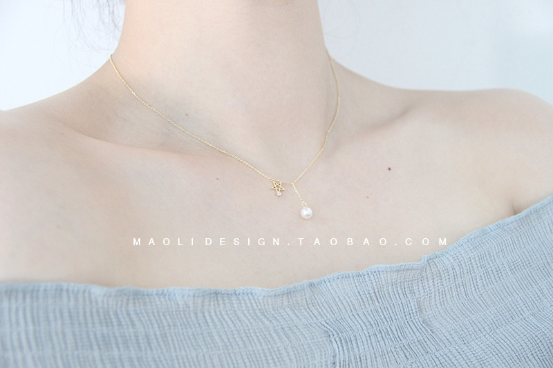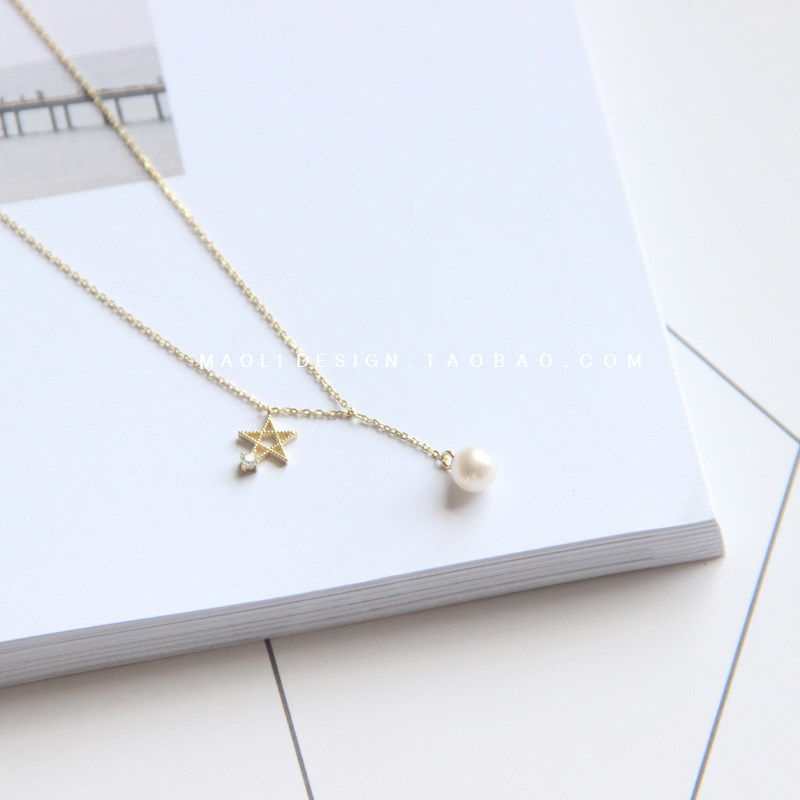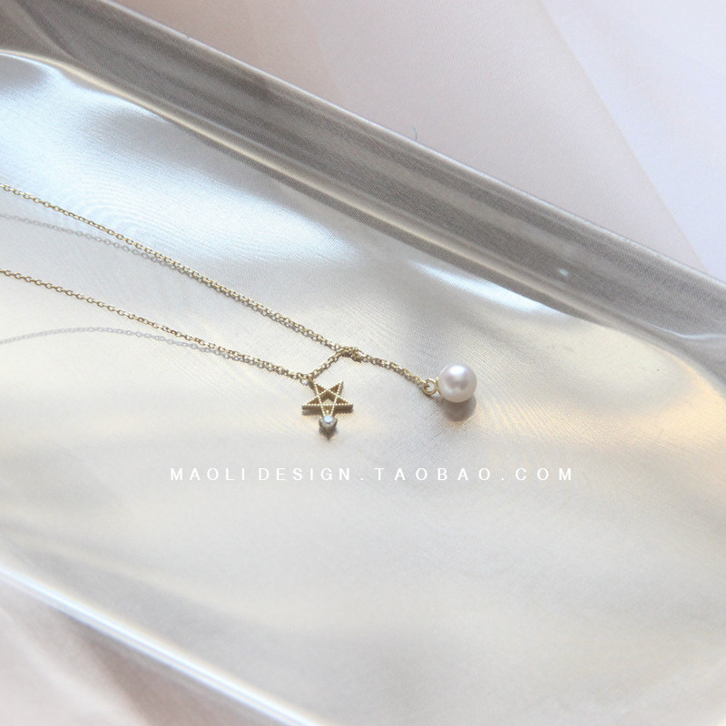 MAOLI natural freshwater pearl necklace silver gilded necklace lock bone chain star-studded fine pendant