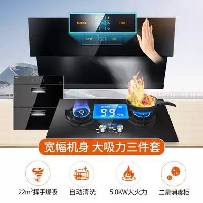 Supor large suction range hood gas stove set disinfection cabinet kitchen smoke stove three-piece meal combination