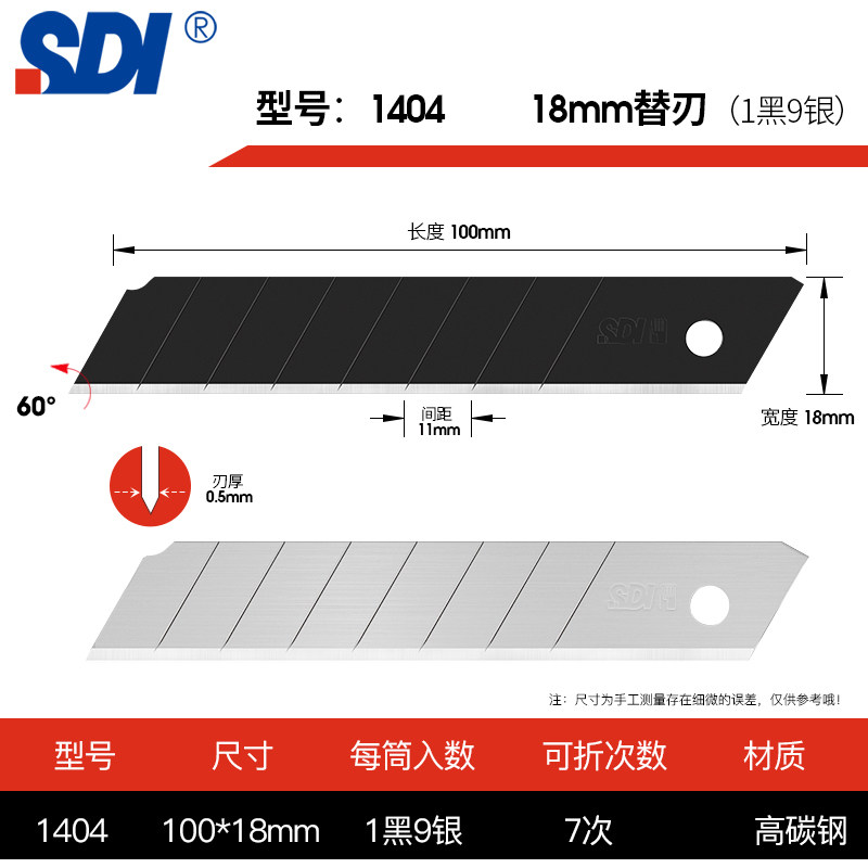 Hand card SDI1404 beauty artificial knife sheet 18mm large number wallpaper wallpaper blade cutting blade cutting blade