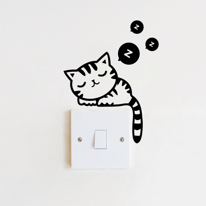 Removable wall sticker switch to sleep Kitty Creative Living Room Bedroom Notebook Wall With Heart Trim Stickers