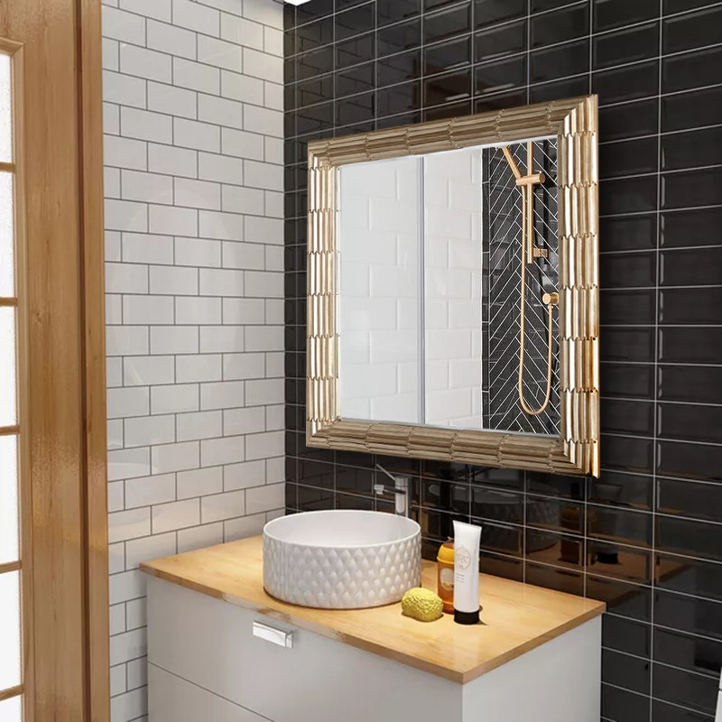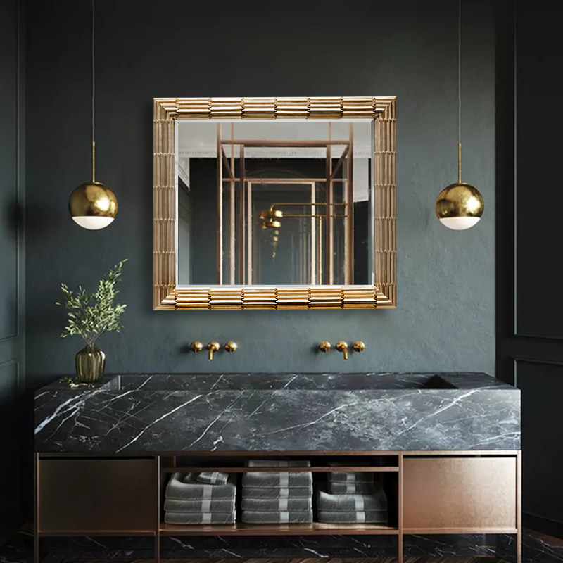 Square Light Luxury Carved Makeup Mirror Bathroom Mirror Decorative Mirror Clothing Store Full Body Mirror Full Body Floor Mirror M421