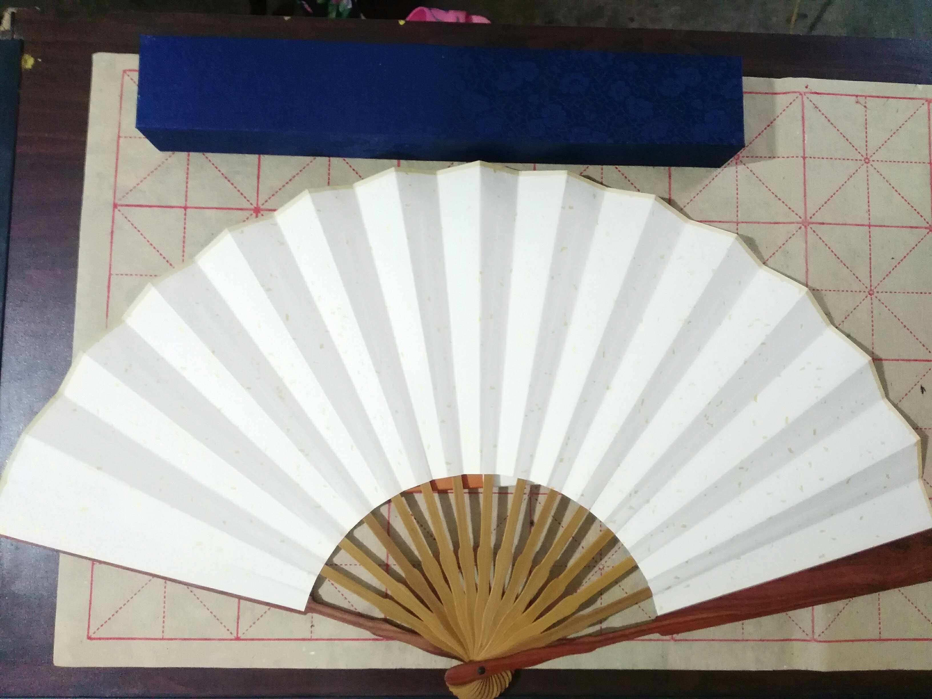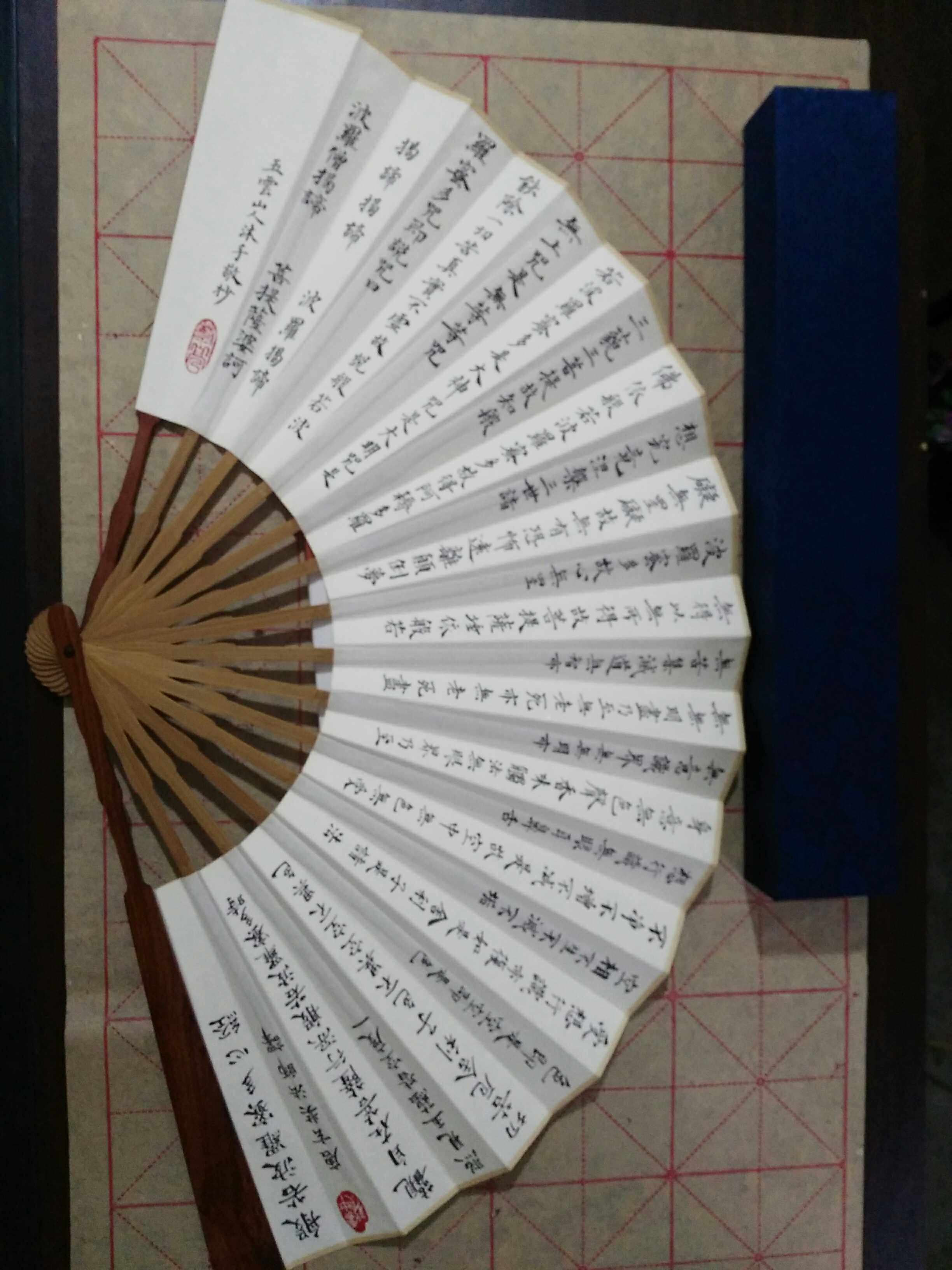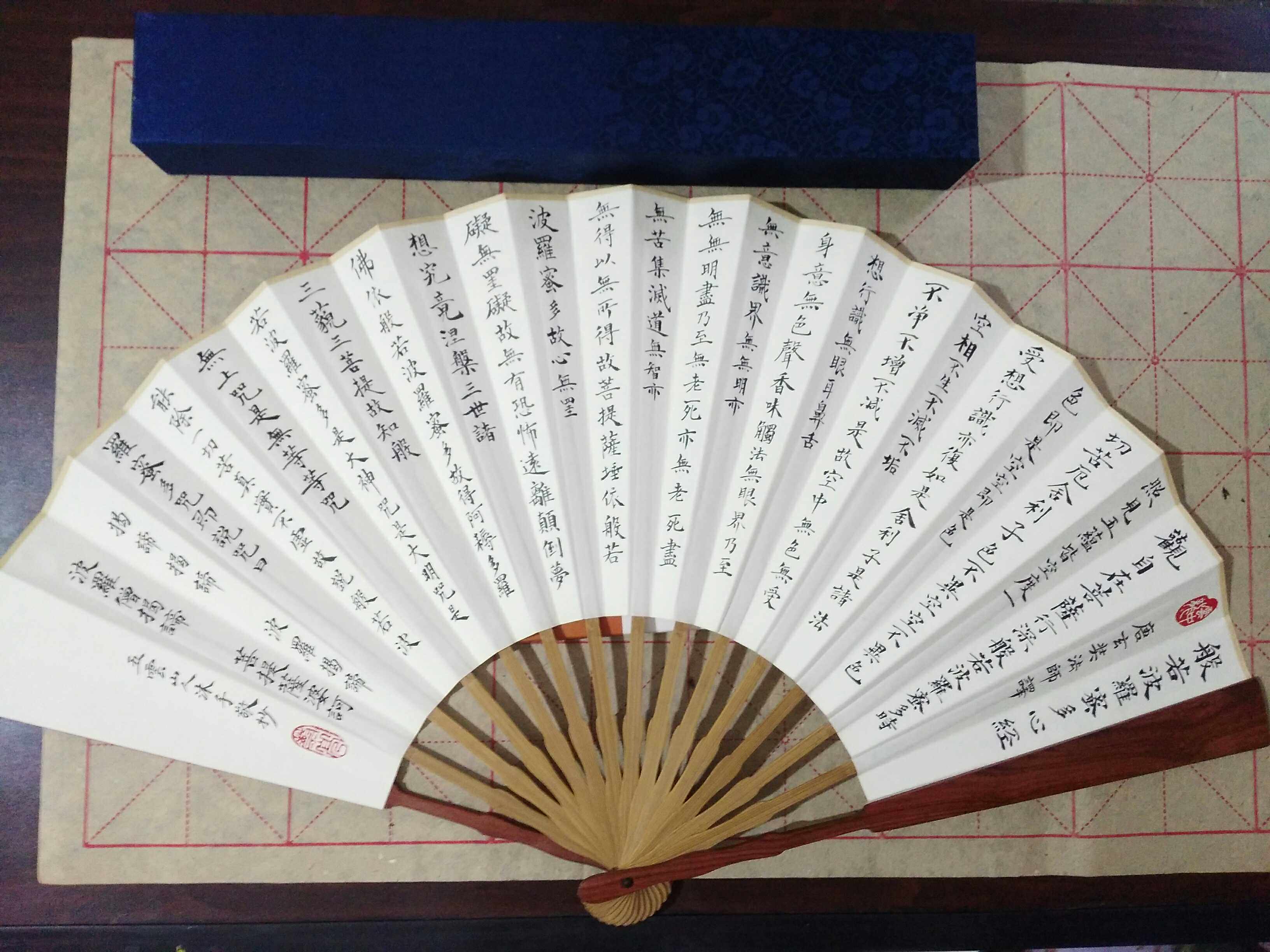 Handwritten heart warp paper fan Wuyunshan People's pro-written book Law True Calligraphy Red Wood Umu Folding Fan matching box