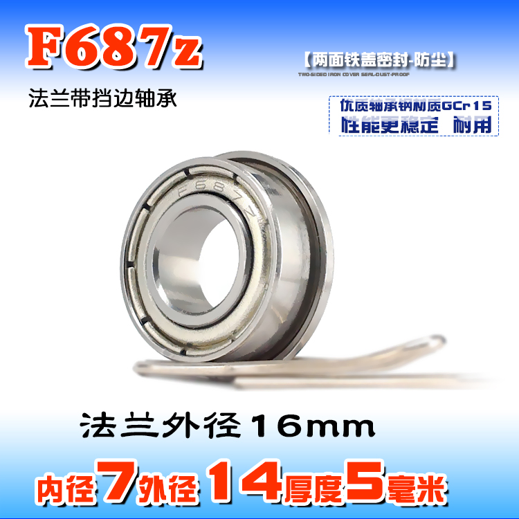 Deep groove ball micro-blocking edge flange small bearing F687Z ZZ F618 7Z inner diameter 7mm outer diameter 14 thickness 5mm