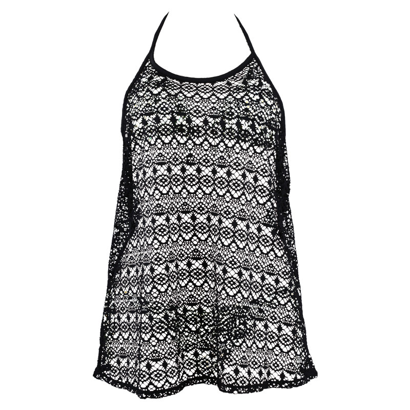 Coritiv bikini lace blouse sunscreen beach hollow A word thin black white spa quick-drying vest