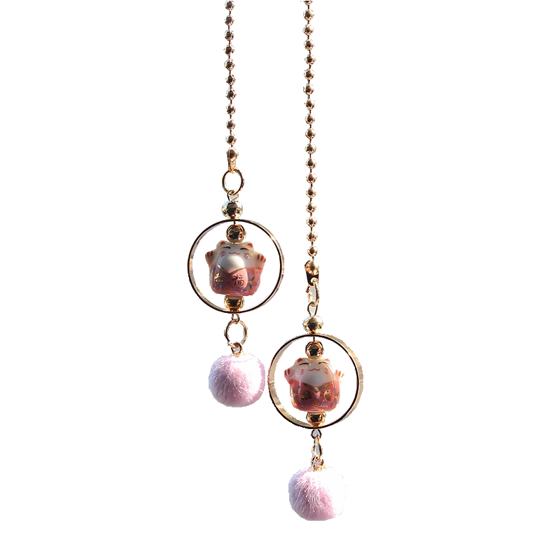 A pair of lucky cats a pair of lucky cats pink hair beckoning cats red and black hair fans with angel wings bell fans with angel wings fringed blue ribbon angel wings bells blue ribbon angel wings fringed beckoning cat in and out flat