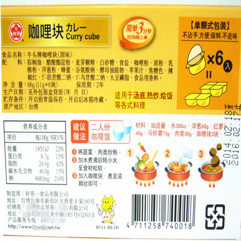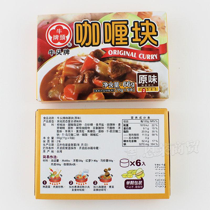 Taiwan imported cattle head card curry block original taste 66g Indian curry boxed block curry rice curry chicken seasoning