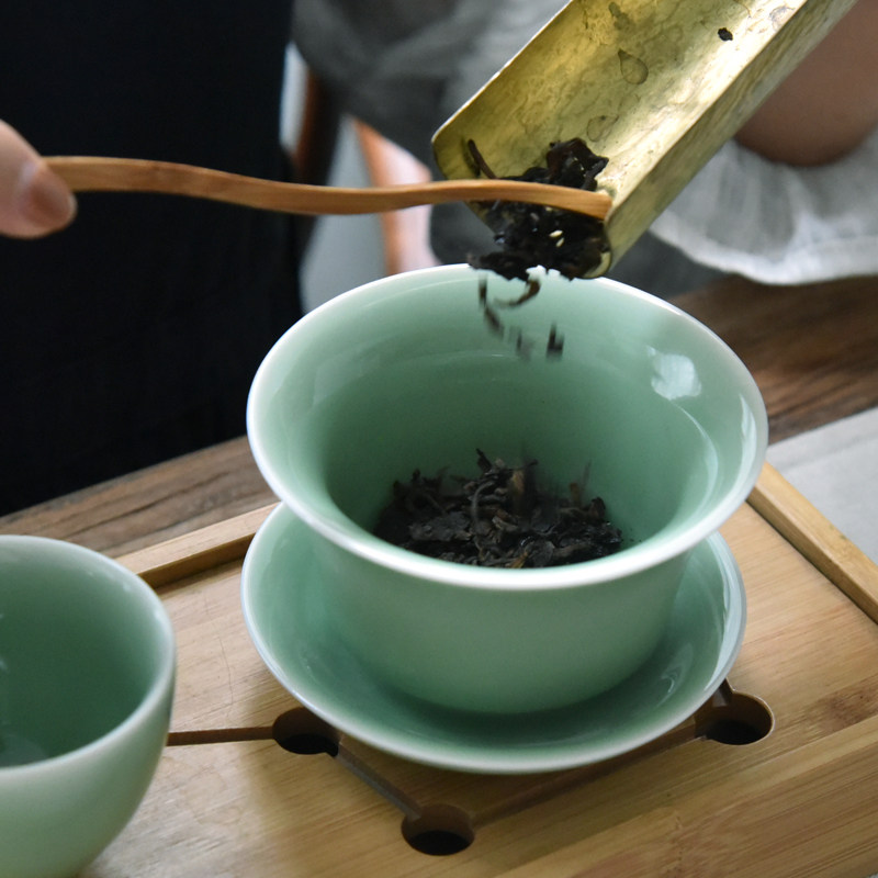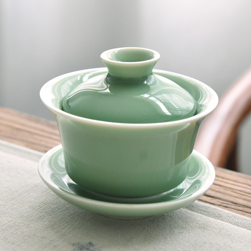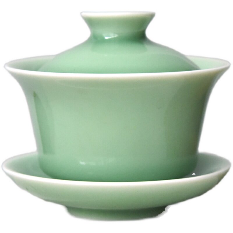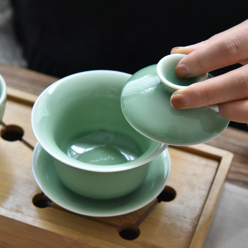Dragon Springs Green Porcelain Handcrafted Cover Bowl Large ceramic Tea Bowl Gongfu Tea Tea Cup Home Three-only bowls 140ml