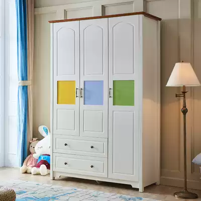 Mediterranean simple modern wardrobe Nordic three door wardrobe home bedroom open door white children solid wood wardrobe