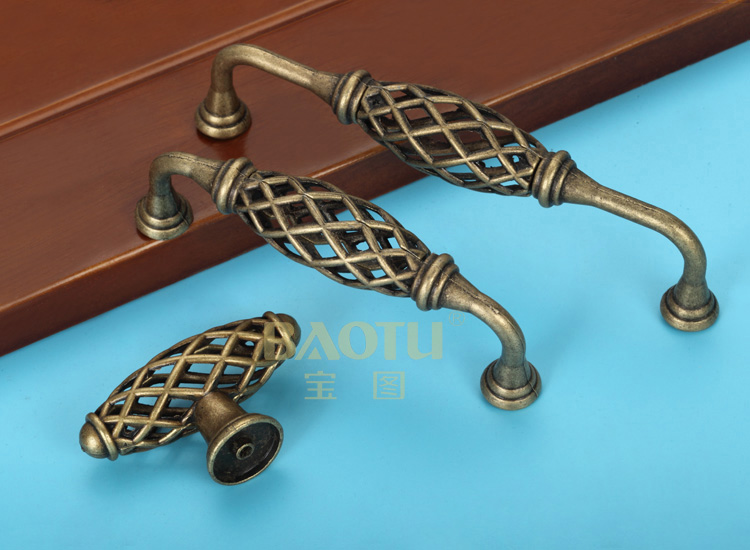Green Ancient Bronze Bird Cage Handle Eu Style Vintage Overall Cupboard Wardrobe Door Handle Retro Fields Garden Mesh Drawer Handle
