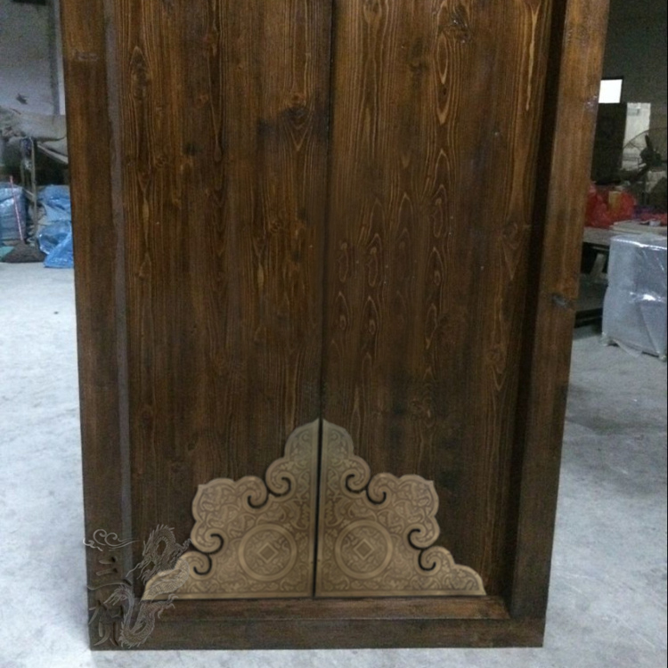 Chinese antique carved flower door decorative corner wooden door Ancient courtyard door corner pure copper carved Fushou copper skin