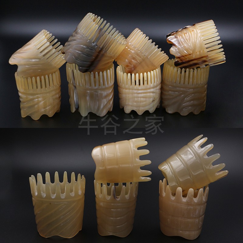 Natural horn comb Head massage comb Meridian comb brush Household bath shampoo comb Scalp massage tube comb