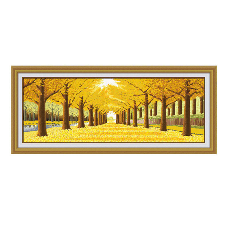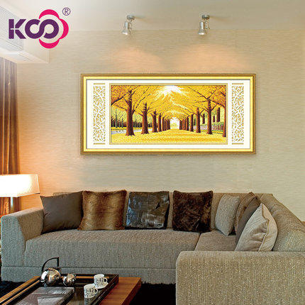 KS cross stitch cotton thread living room 2 meters large print modern European landscape painting 1 meter 3 times gold all over the ground