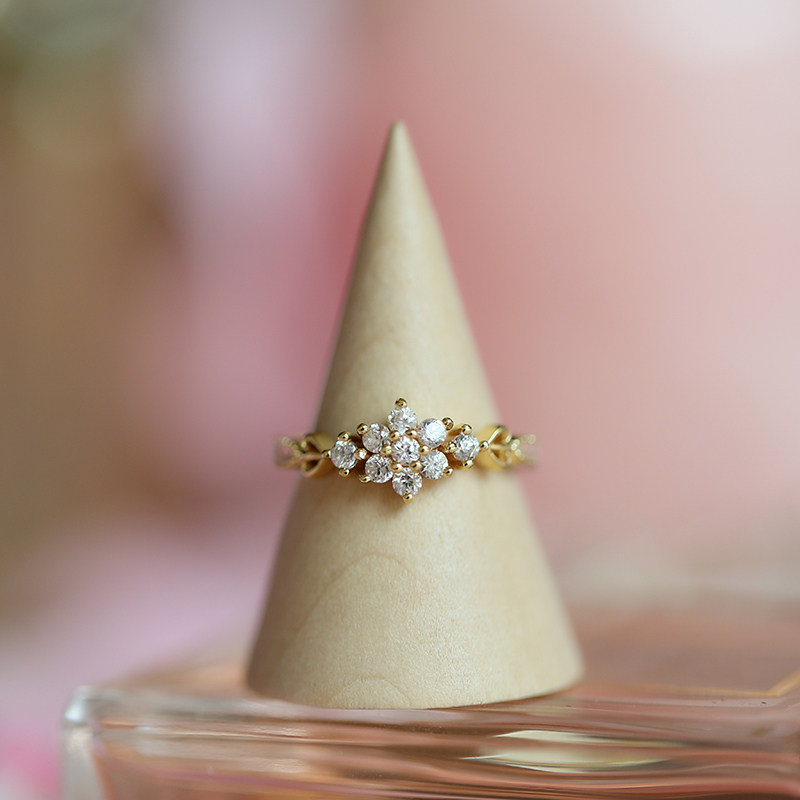Silver Benist 925 pure silver plated 14K gold inlaid artificial zircon ring woman superior snow flower ring Japanese light jewels