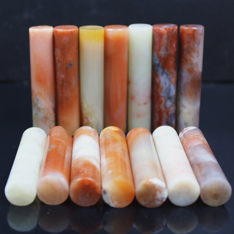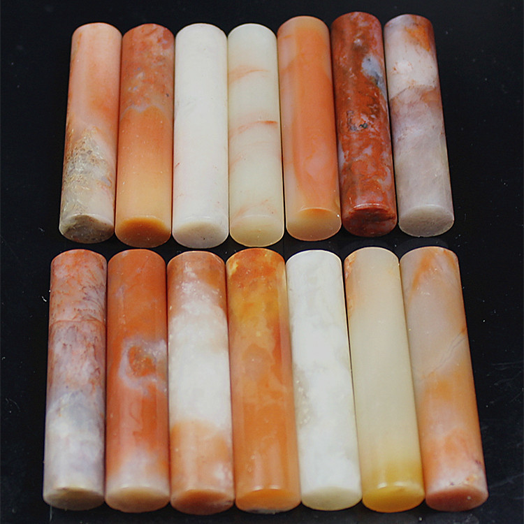 Natural Lao country stone round seal gold stone seal carving like Shoushan stone Balin Hibiscus high mountain field yellow stone material 1X5 small seal