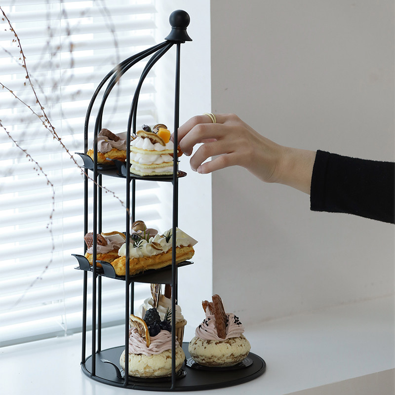 Dessert table Bird cage cake rack White Wrought iron dessert rack European wedding cold food rack Creative tea break dessert rack