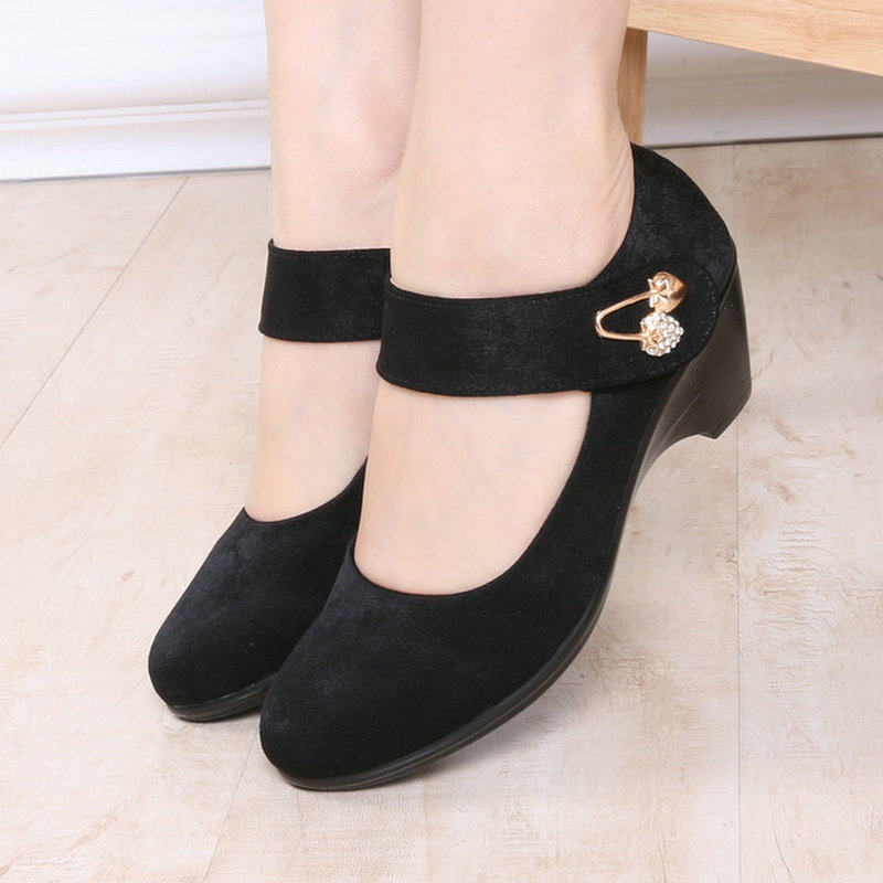 Spring and summer old Beijing cloth shoes women's single shoes wedge thick-soled hotel tooling shoes work shoes square dancing shoes black cloth shoes
